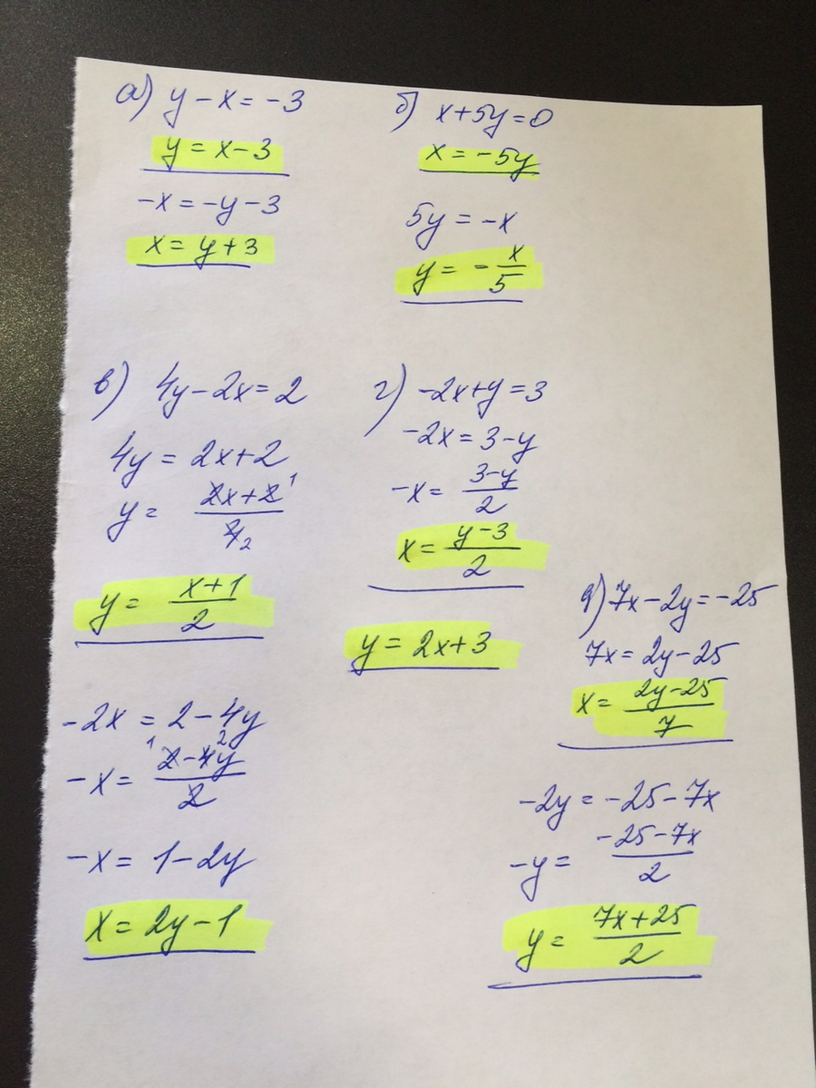 Выразите в уравнениях y через x и x через y