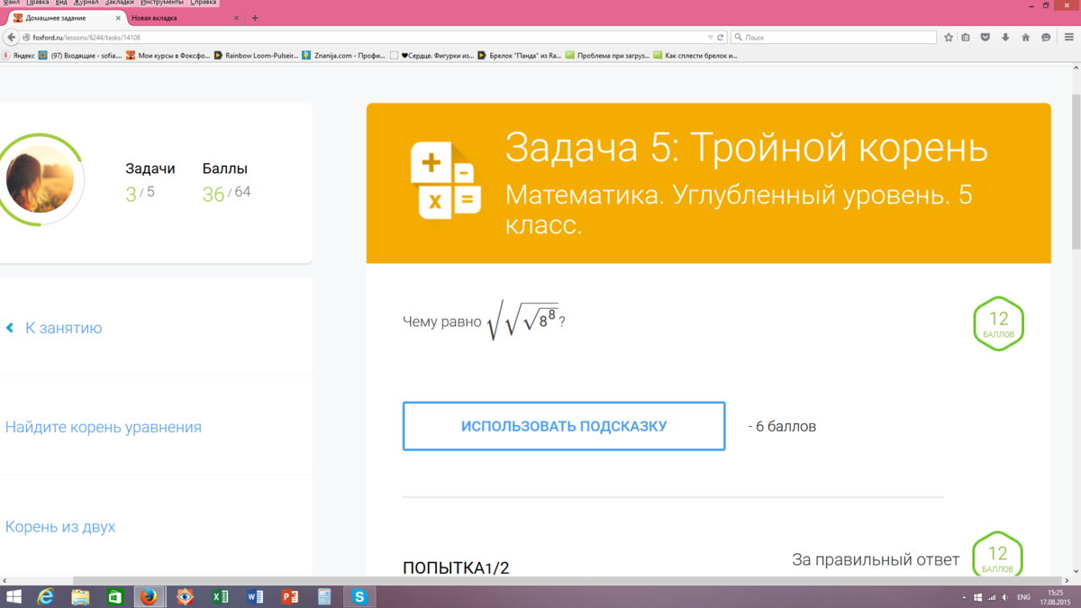 Ответ равен 8. Убираем по одному корню при этом делим показатель степени на 2.