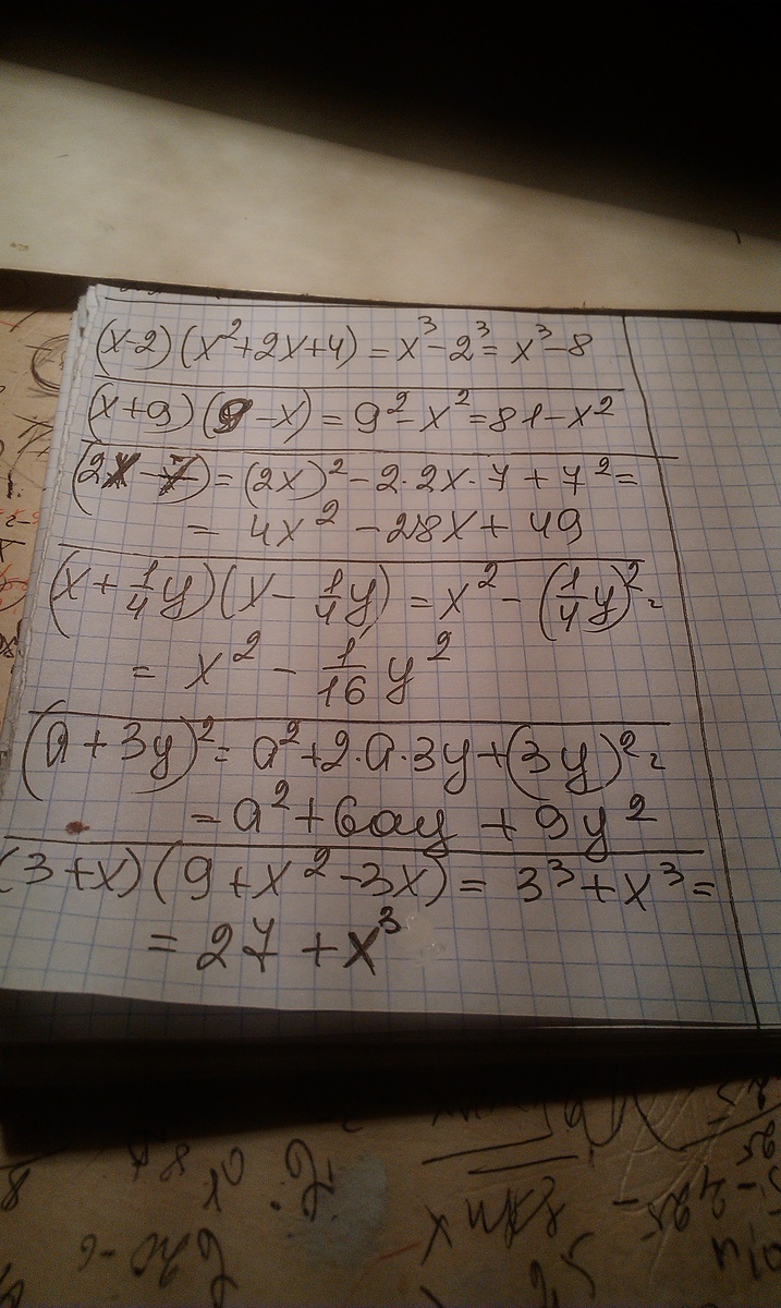 Все расчеты будут производится по формулам сокращенного умножения и по правилу умножения многочлена на многочлен.