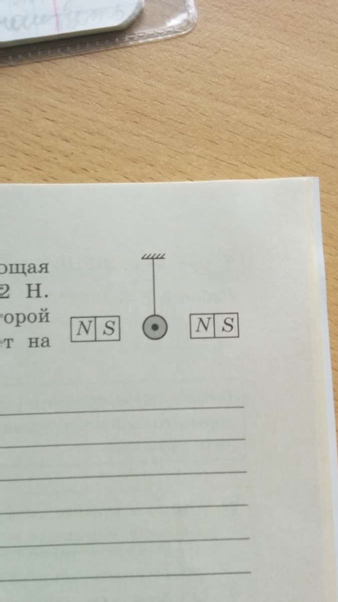 по проводнику, висящему на нити в магнитном поле, течёт электрический ток, направленный "к нам". масса проводника 15 г. сила натяжения нитт, действующая на проводник, равна 0,2 н. чему равна сила, с которой магнитное поле действует на проводник с током?