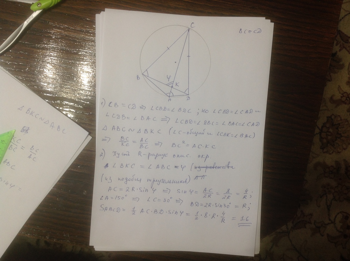 б) Найдите площадь этого четырехугольника, если АС=8, и угол BAD=150°.