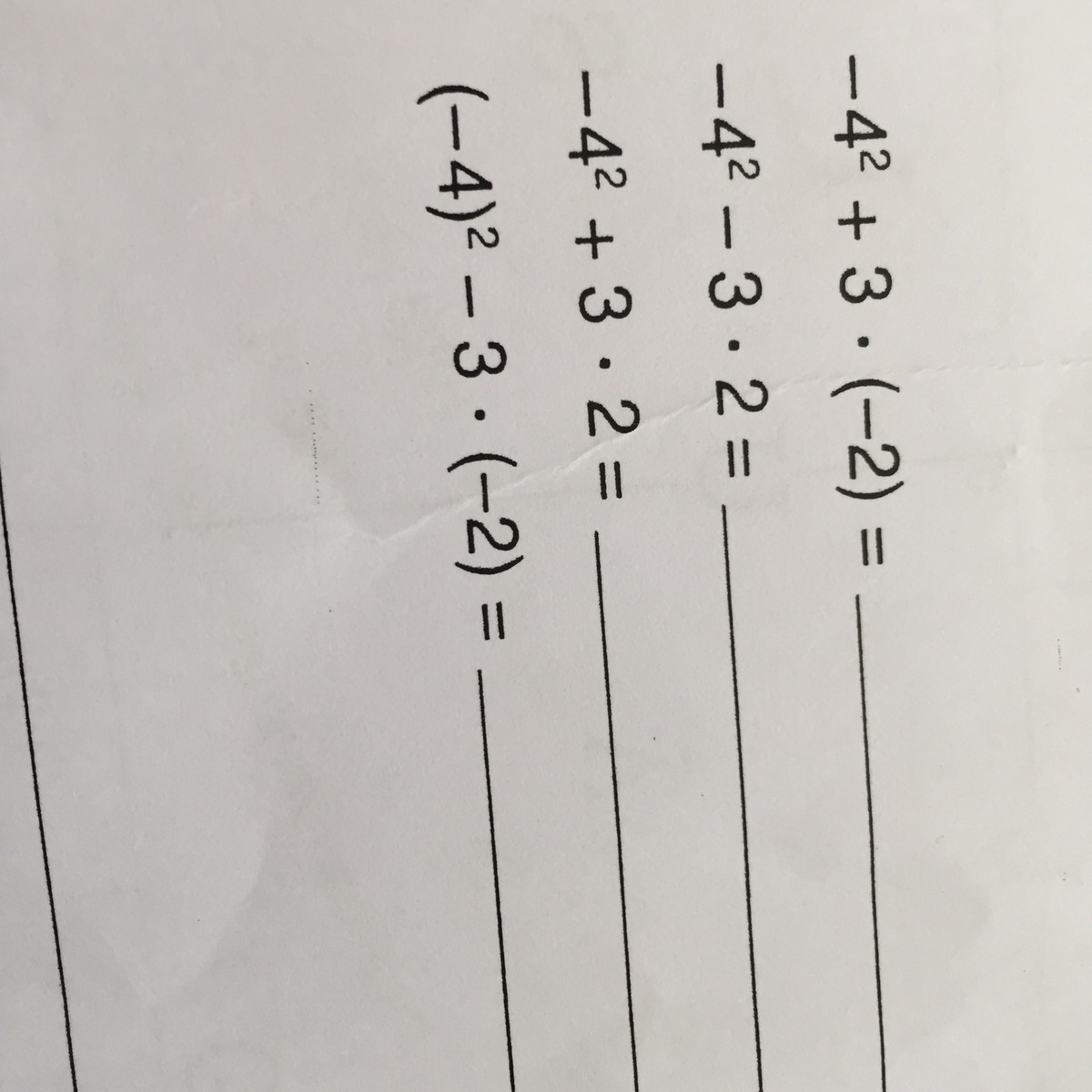 -4²+3*(-2)=-4²+(-6)=-16+(-6)=-22