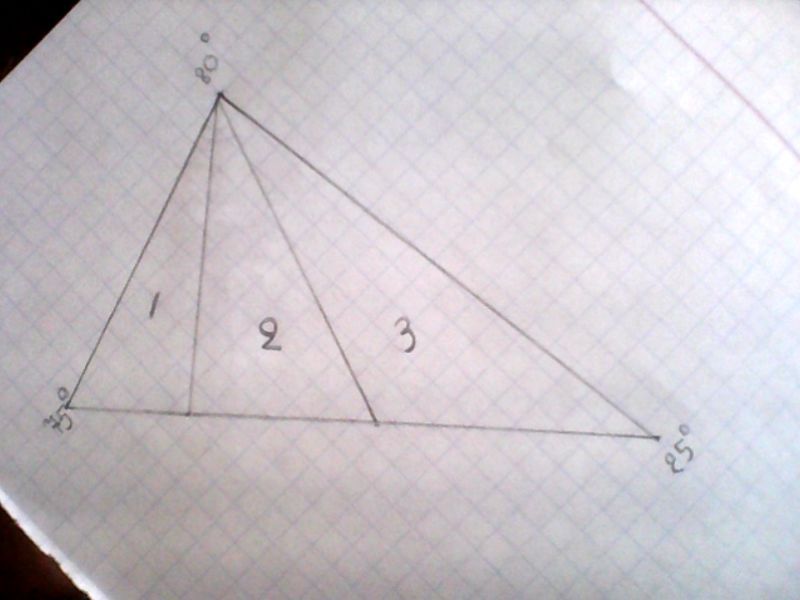 1)Т.к. угол в 75 и 25 в сумме составляют 100, то 3 угол равен 80.