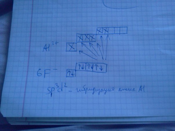 Нет) на пустые одну 3s-орбиталь, три 3p-орбитали и две 3d-орбитали иона Al3+ сядут 6 электронных пар шести анионов F-)