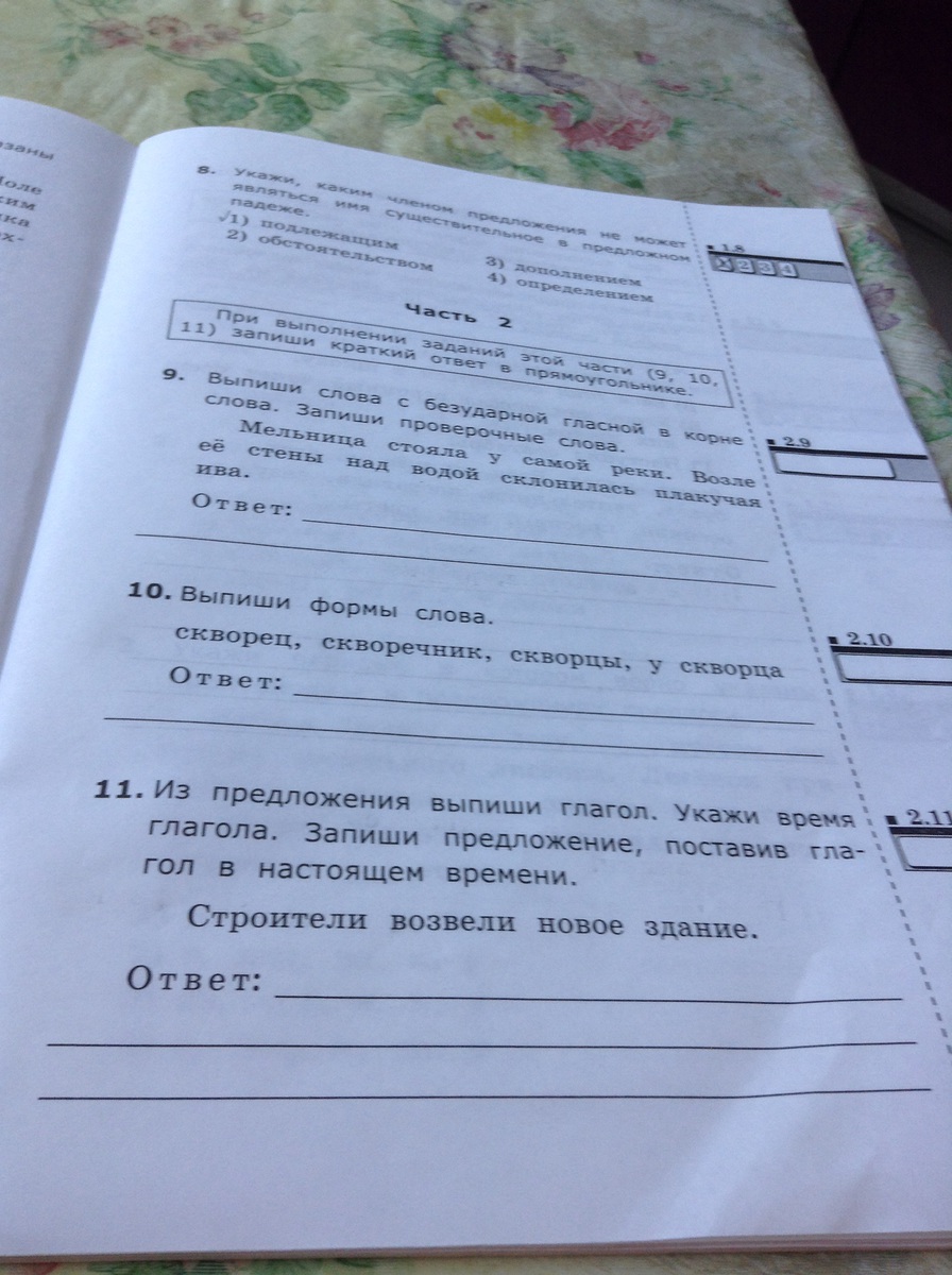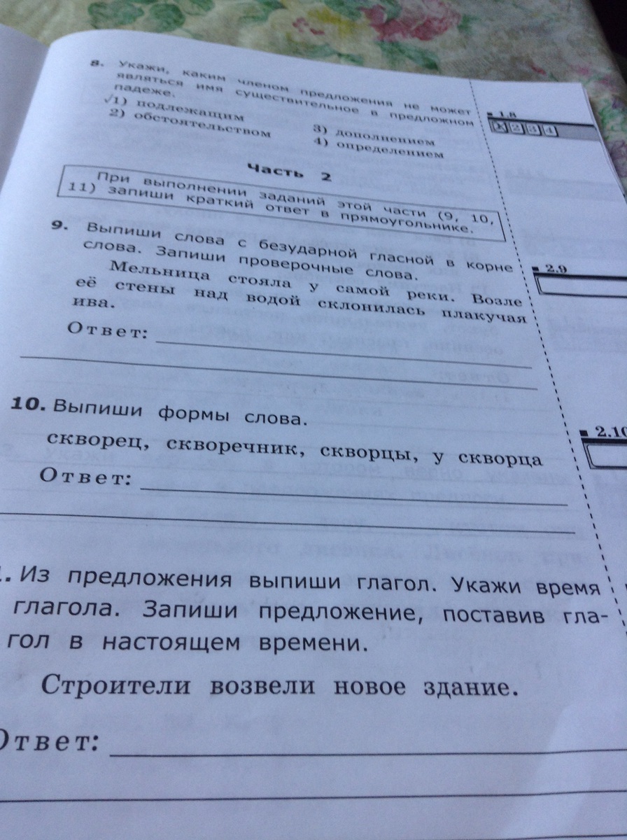 Строители возвели новое здание. (Выписать глагол, указать время. Поставить глагол в настоящее время и составить с ним предложение)