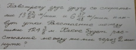 13 46/48+6 37/48=19 83/48=20 35/48м/мин скорость сближения