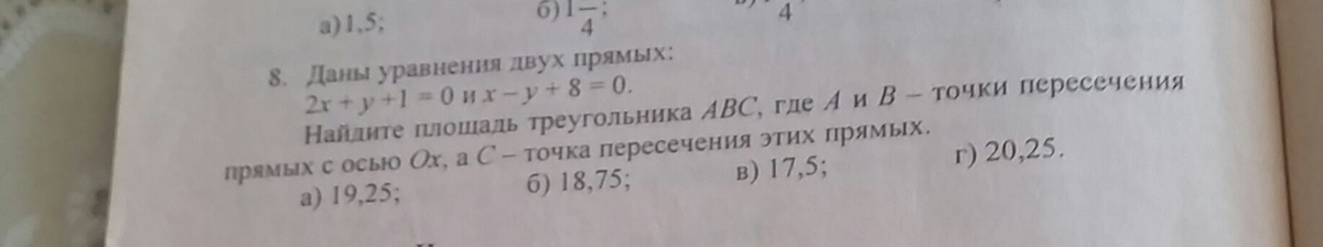 длина АВ=I-1/2-(-8)I=7,5 Это основание треугольника