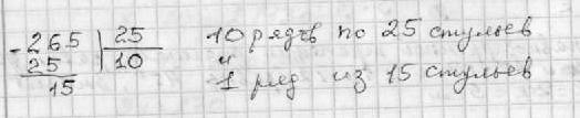 В зрительском зале учащиеся расставили 265 стульев по 25 стульев в ряд . Сколько получилось?