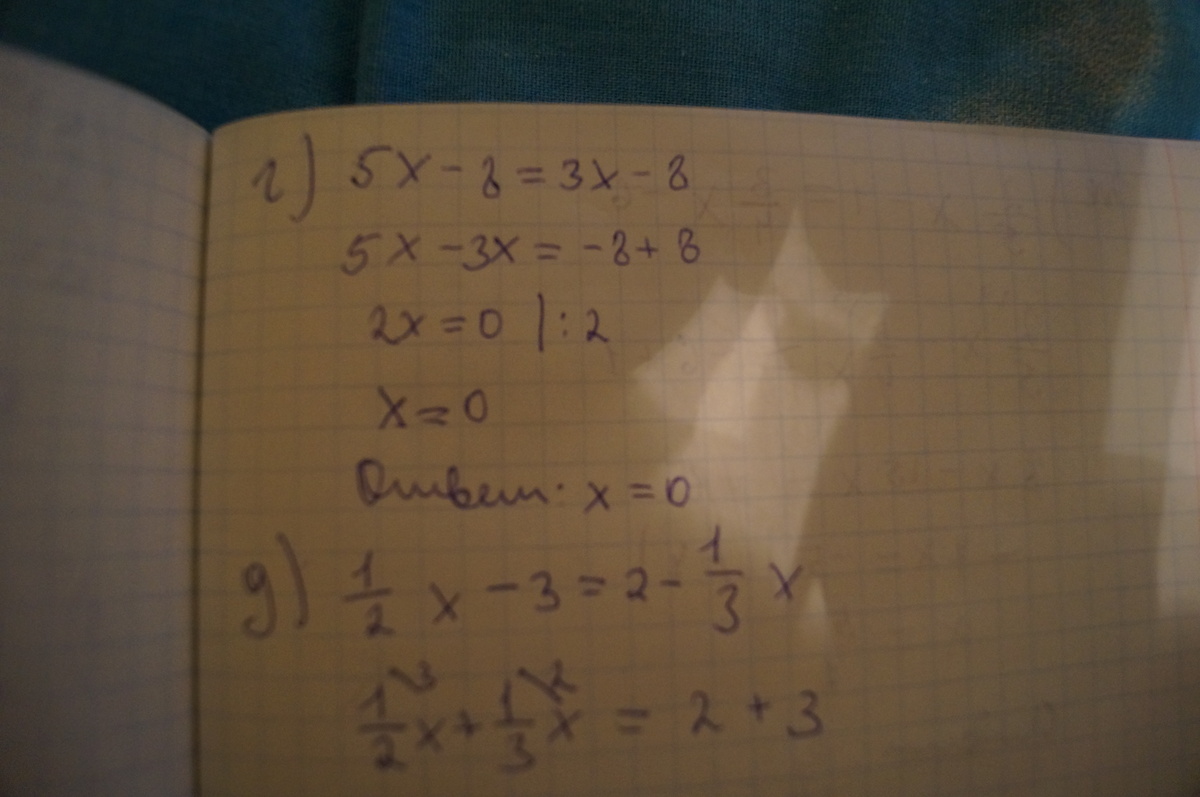 решите уровнение а)х+3=3х-7 б)3-х=1+х в)7х+2=3х-10 г)5х-8=3х-8 д)1/2х-3=2-1/3х е)5х-2целых1/4=1/2x ж)2/5x-1=3/4x-6 з)2х-3/5=3/4х-1/2 плиз решите срочно))(
