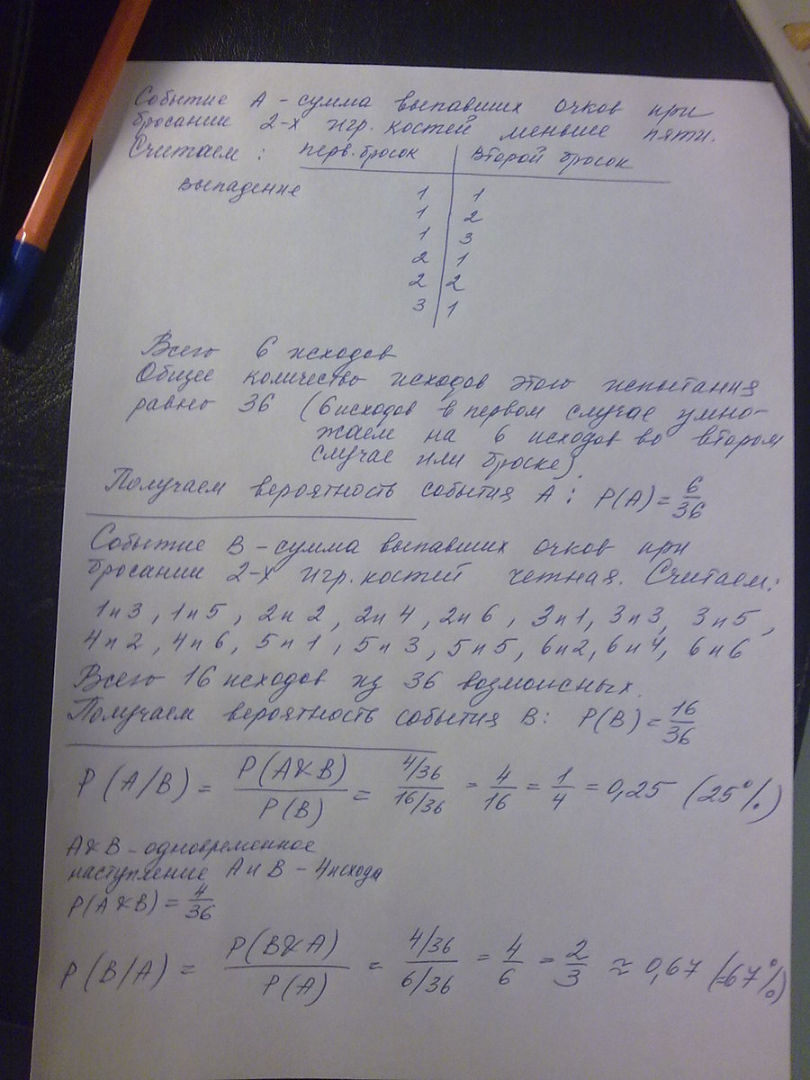 Найти: Р(А), Р(В), Р(А/В), Р(В/А).