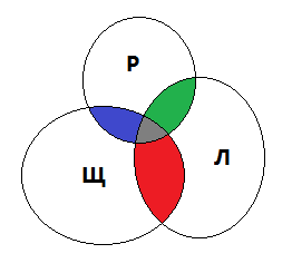 1)лебедь И (рак или щука), найдет (лебедь и рак) + (лебедь и щука) + (лебедь и рак и щука)