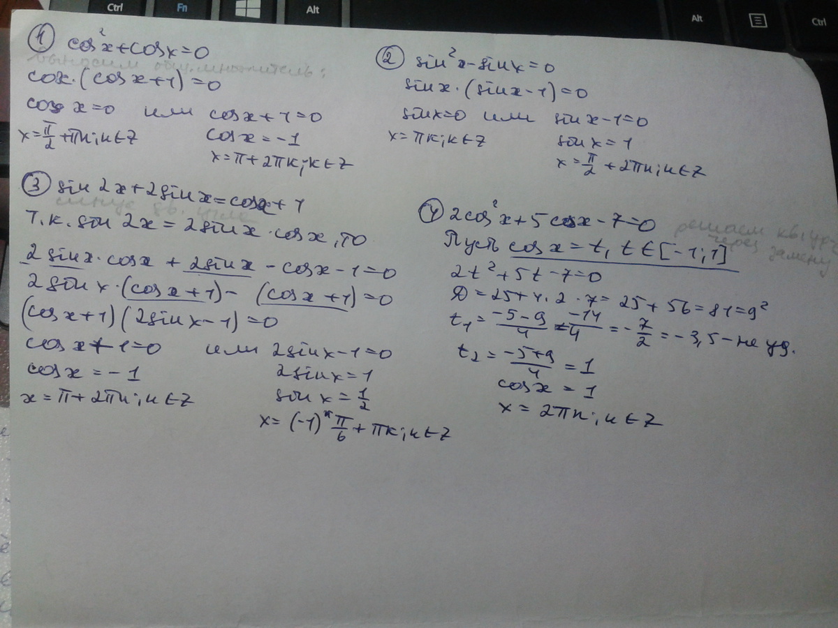 1. cos^2 x+cosx=0