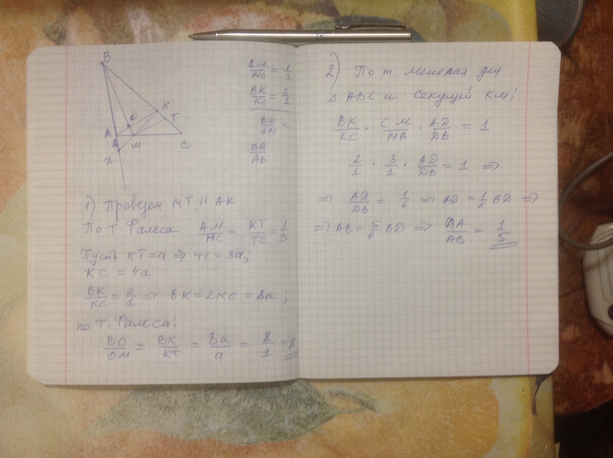 б) Найти отношение DА : АВ. (по теореме Менелая).