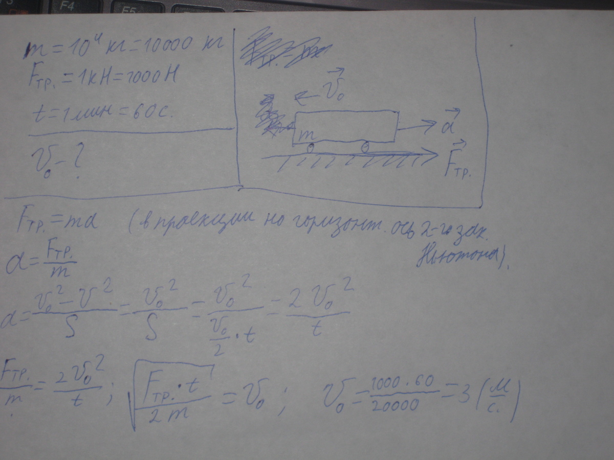 Трамвай массой 10^4 кг при торможении останавливается под действием силы трения 1 кН за 1 мин. С какой скоростью двигался трамвай?
