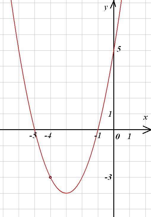 у = х² + 6х + 5, с выколотой точкой (-4; -3).