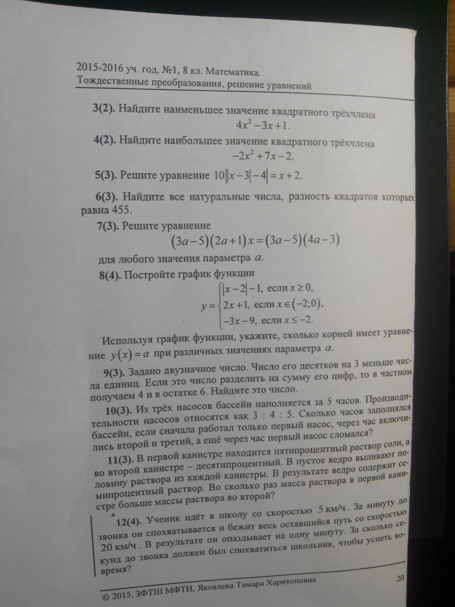 3. Наименьшее значение квадратного трехчлена, у которого a > 0,