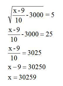 Ответ 30259, какое можно придумать уравнение с корнем и дробью, для того чтобы получить результат с таким ответом?