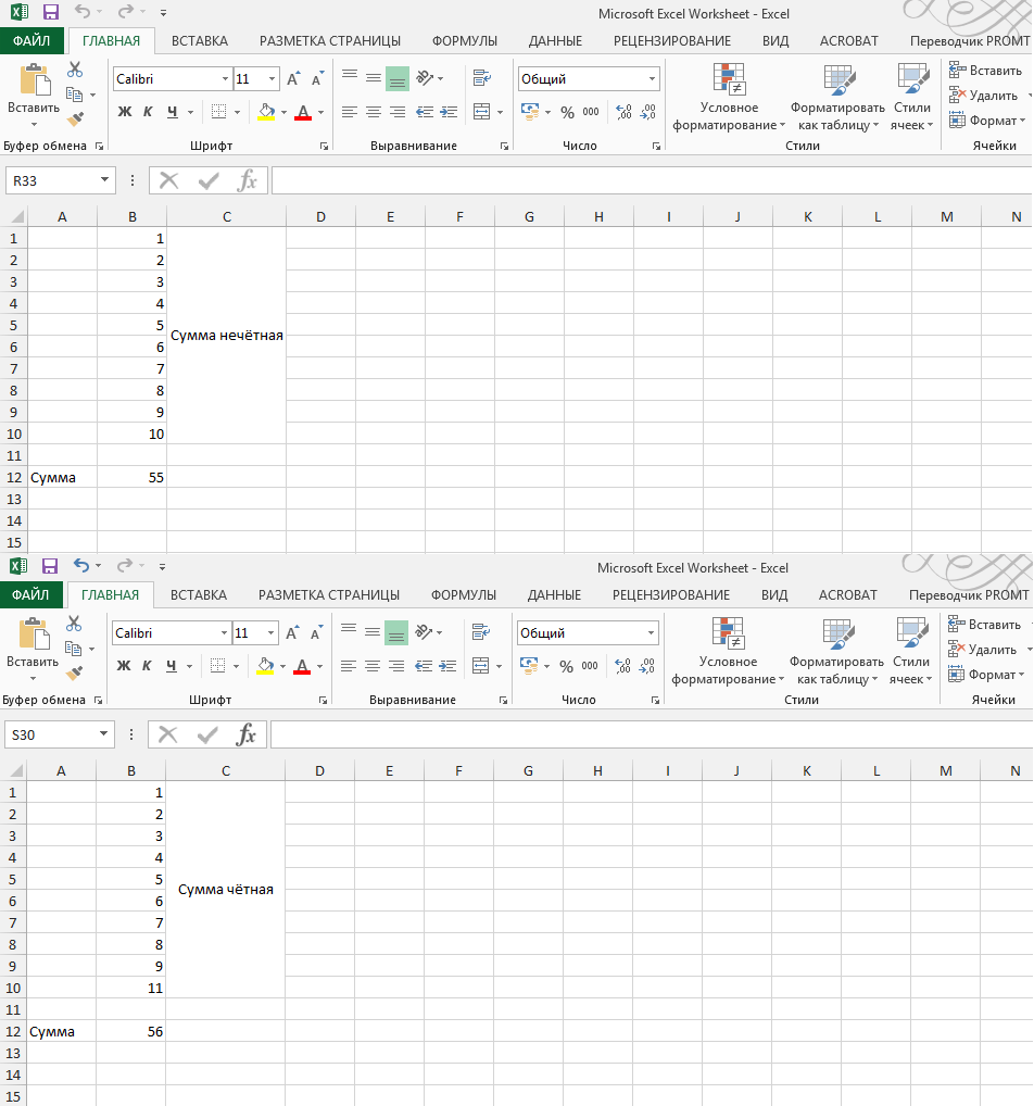 Помогите решить задачу в Excel: В диапазоне ячеек В1:В10 записаны 10 целых чисел. Определить, четна их сумма или нет.