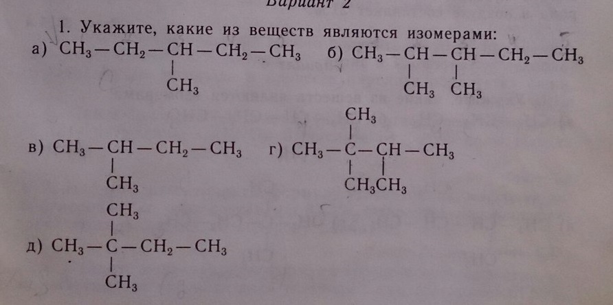 а) г) и Д) являются изомерами. Так как у них общая формула C₆H₁₄. Изомеры гексана