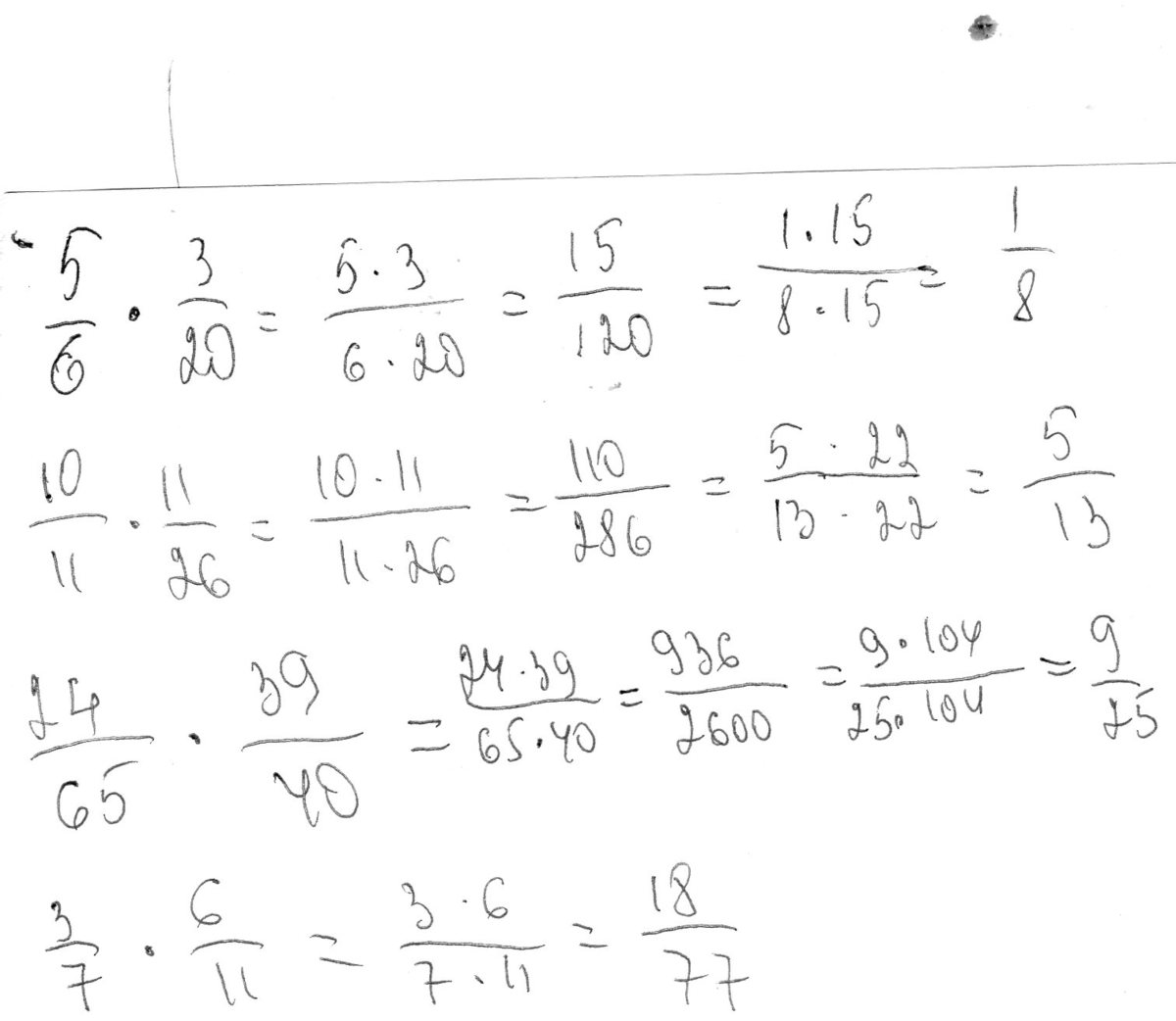 5/6*3/20 , 3/7*6/11 , 10/11*11/26 , 24/65*39/40 !!! Очееень надо!!