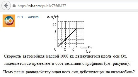 Скорость автомобиля массой 1000 кг, движущегося вдоль оси ох,