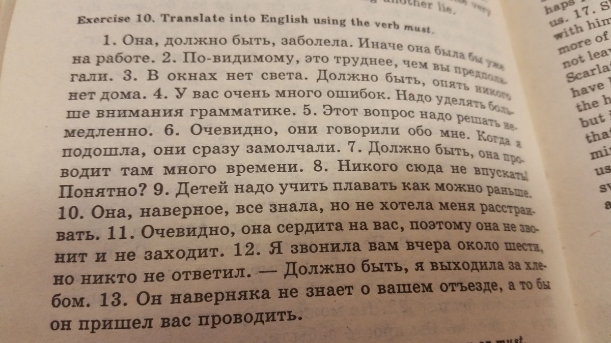 Помогите перевести с русского на английский,используя модальный глагол must.Будьте людьми помогите,перевести хотя бы первые 10!!!!