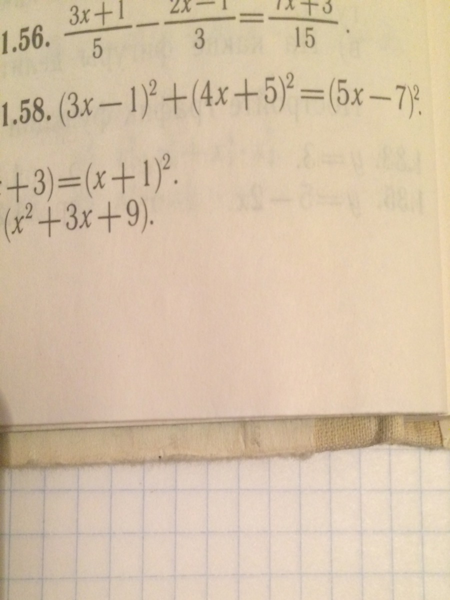 (3x-1)^2+(4x+5)^2=(5x-7)^2\9x^2-6x+1+16x^2+40x+25=25x^2-70x+49\104x=23\x=frac{23}{104}