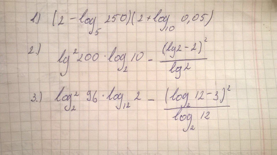 (2-log_5250)(2+log_{10}0,05)=(log_525-log_5250)(log_{10}100+\+log_{10}0,05)=log_5frac{1}{10}*log_{10}5=-log_510*log_{10}5=-1