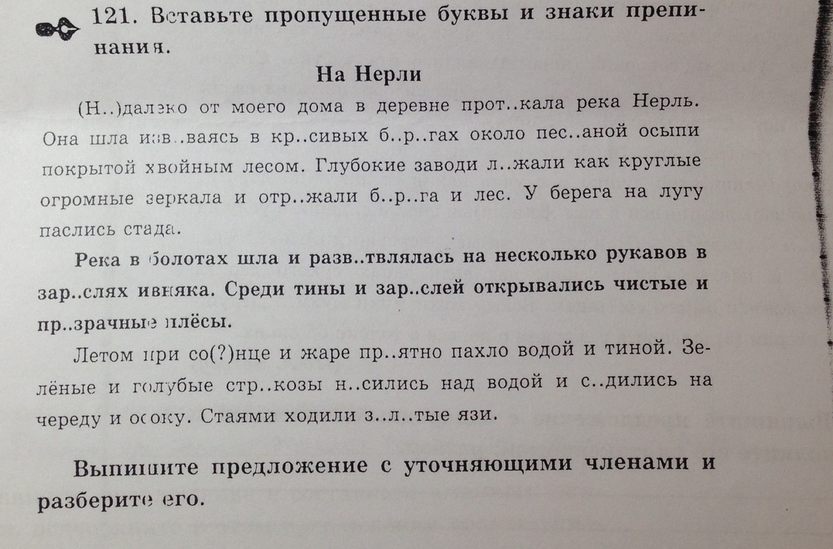 Здравствуйте. Помогите пожалуйста. В тексте расставлять пропущенные буквы и знаки препинание не нужно. На первой фотографии после текста (снизу) есть задание его надо выполнить. И на 2-ой фотографии есть небольшое задание которое надо тоже выполнить. Очень надеюсь что поможете мне!