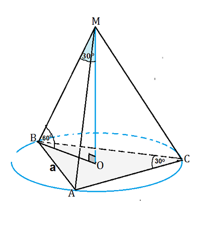 Основания пирамиды служить треугольник со стороной "а" и противолежащим углом в 30 градусов.Боковые ребра наклонены к основанию под углом 60 градусов.Найдите боковые ребра пирамиды.