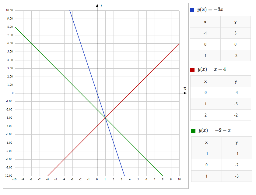 И строим графики. Точка пересечения всех графиков и будет решением системы уравнений.