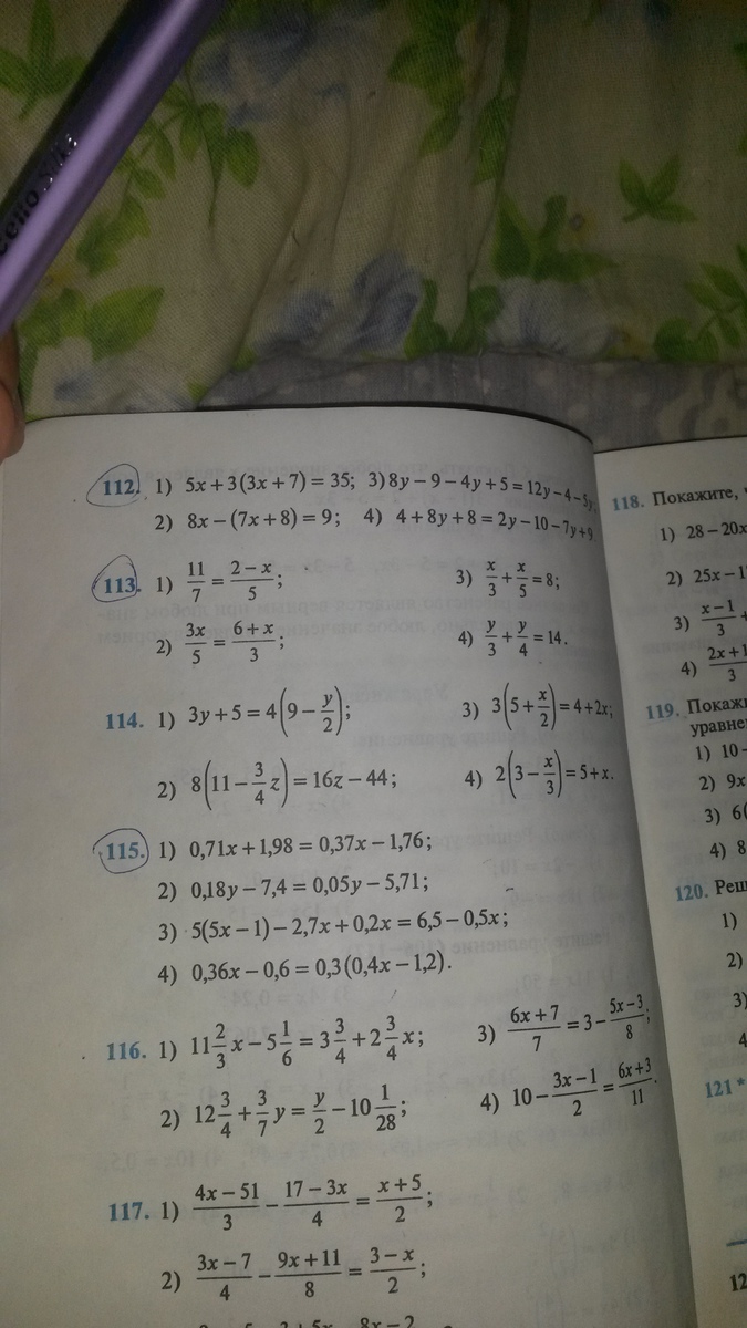 115. 1) Переносим иксы влево, числа вправо (при переносе не забываем менять знак!): 0,71х-0,37х=-1,76-1,98