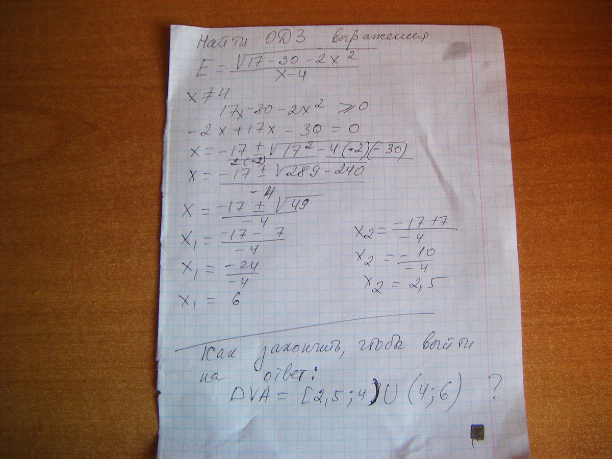 Найдите ОДЗ выражения... Помогите довести до ума решение (возможно ошибочное) чтобы выйти на данный ответ! Ответ приведен в конце.