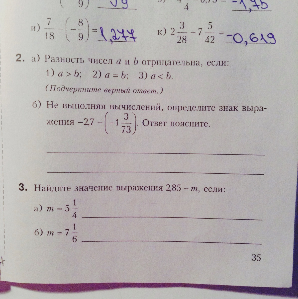 3. 2,85 - 5ц1/4 = 2,85 - 21/4 = 2,85 - 5,25 = - 2,4