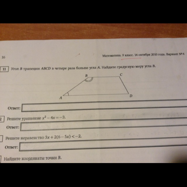 BC парал. AD. Значит сумма угла А и угла В = 180