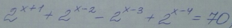 2^{x+1}+2^{x-2}-2^{x-3}+2^{x-4}=70\\2^{x-4}cdot (2^{5}+2^2-2+1)=70\\2^{x-4}cdot 35=70\\2^{x-4}=2^1\\x-4=1\\x=5
