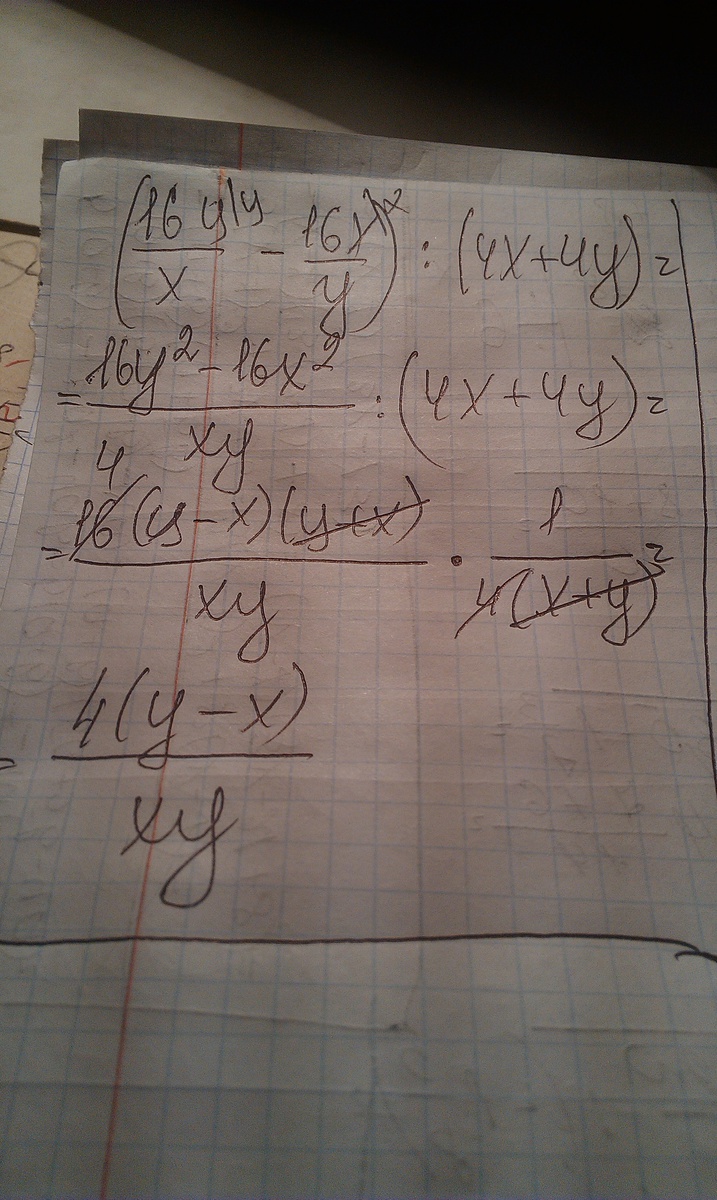 Упростите выражение : (16у/x-16x/y)÷(4x+4y)