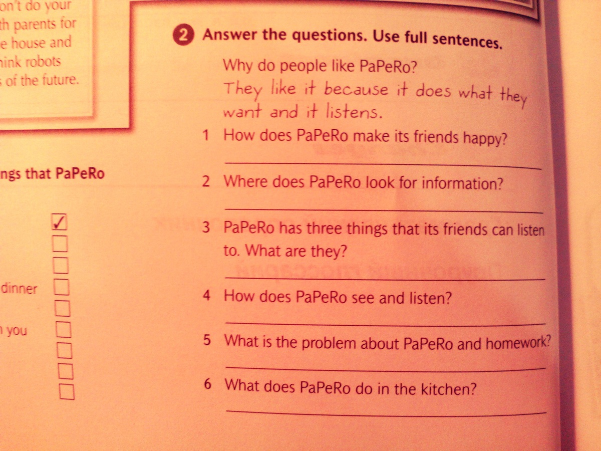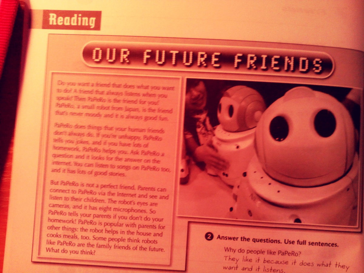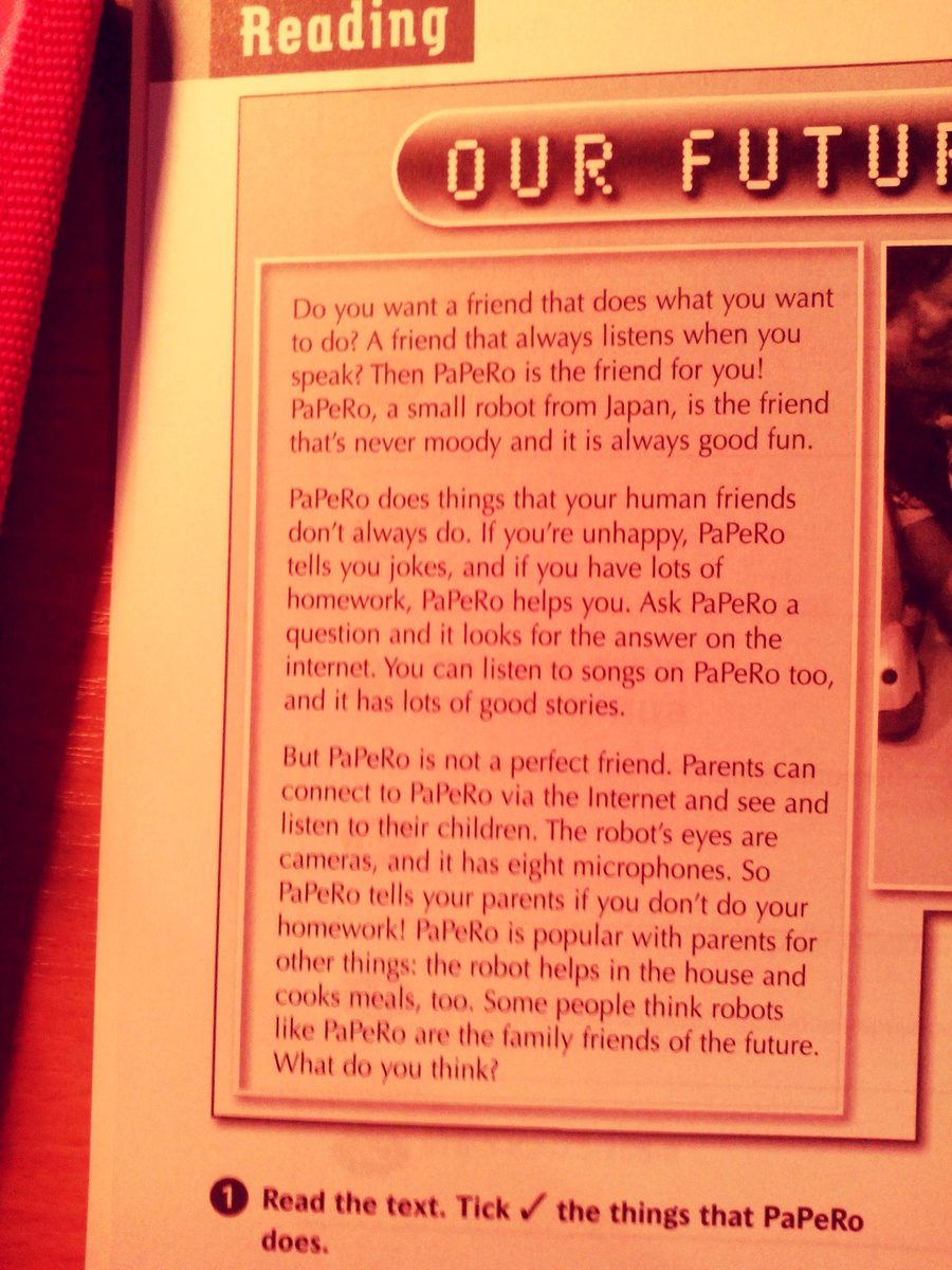 5. PaPeRo has one disadvantages or advantages? If you do something bad or wrong PaPeRo will tell parents about you.