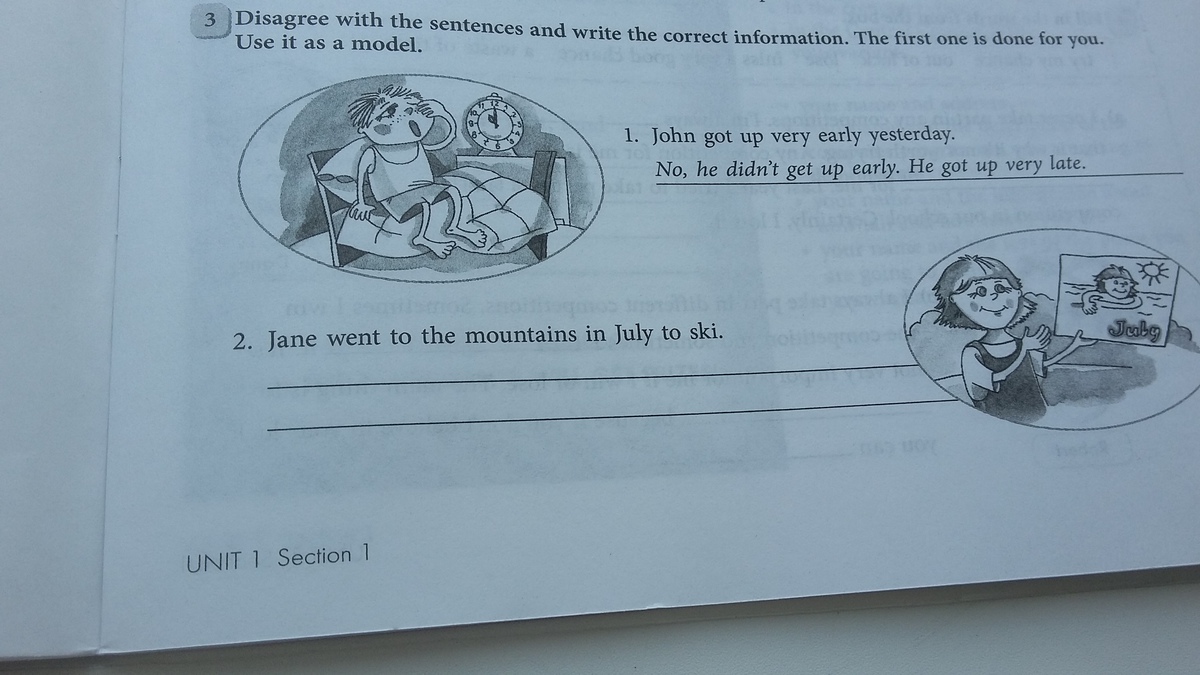 No, he didn't go to the mountains to ski in Julie. He go to the sea or swimming pool in Julie.