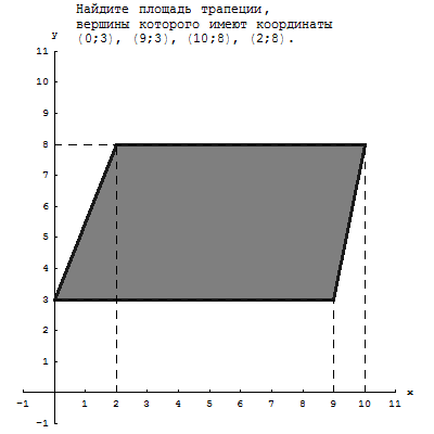 Решение: 1/2(9+8)*5. Ответ: 42,5