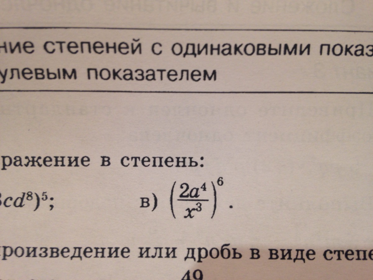 (2a^4/x^3)^6= 2^6*a^(4*6)/x^(3*6)=2^6*a^24/x^18=64a^24/x^18