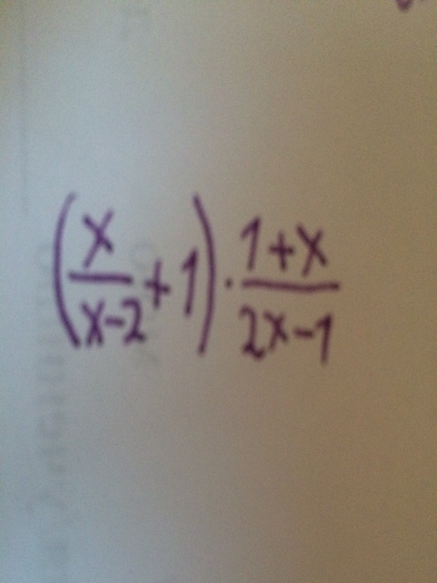 (frac{x}{x-2}+1)cdot frac{1+x}{2x-1}= frac{x+x-2}{x-2} cdot  frac{1+x}{2x-1} =  frac{(2x-2)(1+x)}{(x-2)(2x-1)}
