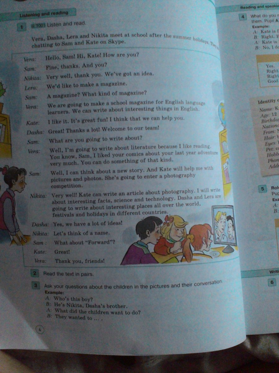 Вера: Мы собираемся создать школьную газету для изучающих английский язык. Мы можем написать много интересных вещей на английском.