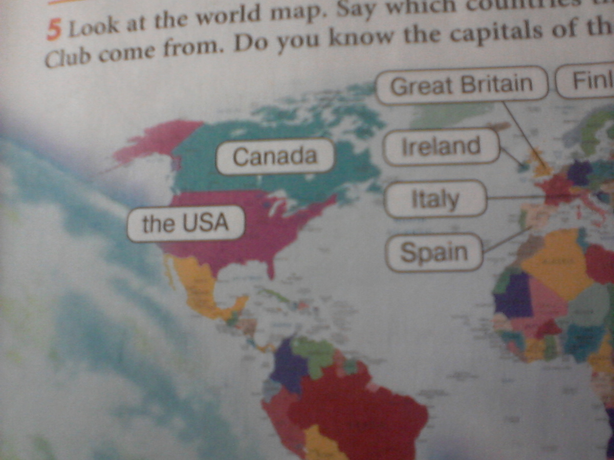 Look at the world map. Say which countries the memders of the International Explorers' Club come from. Do you know the capitals of these countries?