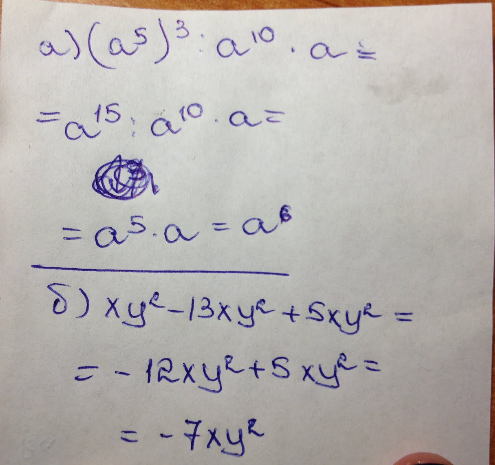 1. (а^5)^3 / а^10 * а =а^15 / а^10 * а = а^6
