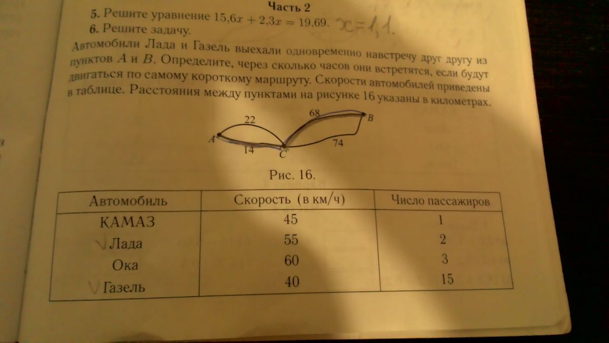 Кратчайшее расстояние между пунктами А и В равно : 14 + 68 = 82 км