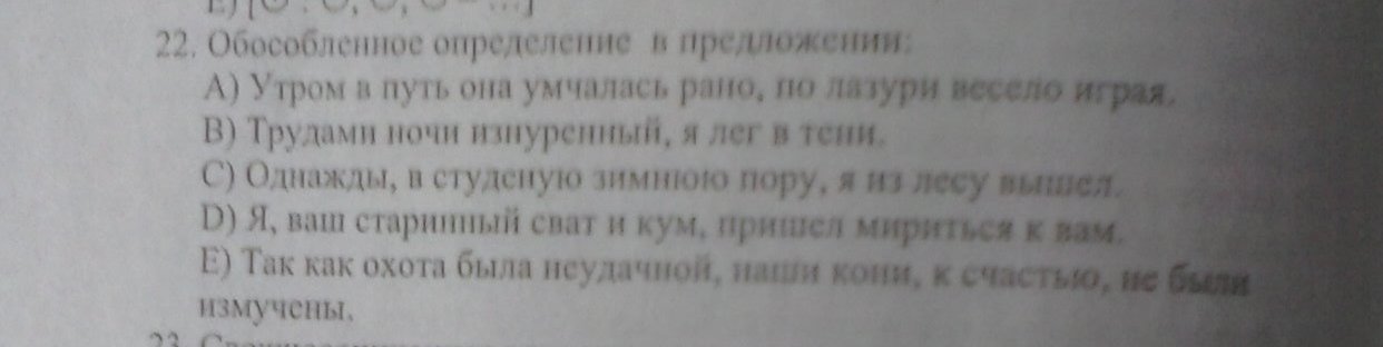 в) я (какой?) трудами ночи изнуренный - обособленное определение
