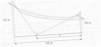 На вершинах двух телеграфных столбов сидят два воробья. Высоты столбов равны 24м и 10м. Расстояние между ними равно 34м. На каком расстоянии от второго столба нужно положить хлеб для этих воробьев, чтобы расстояния от воробьев до хлеба были одинаковыми?
