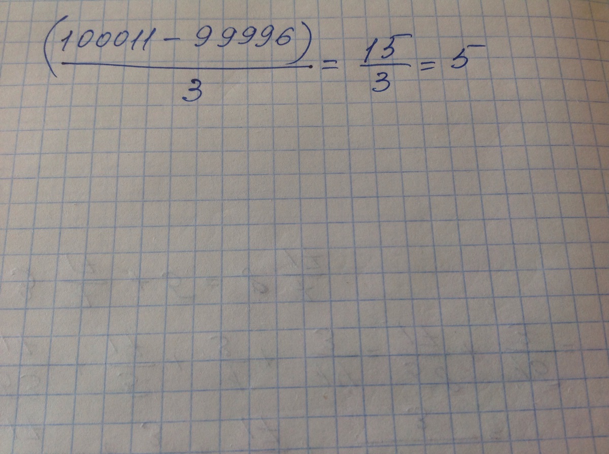 Запиши выражение частное разности чисел 100011 и 99996 и числа 3 найди его значение
