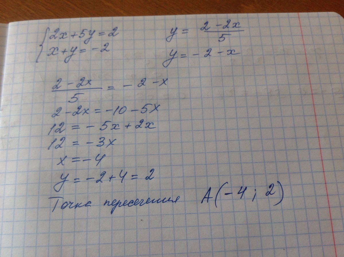 Ответ: Прямые пересекаются в точке (-4; 2)
